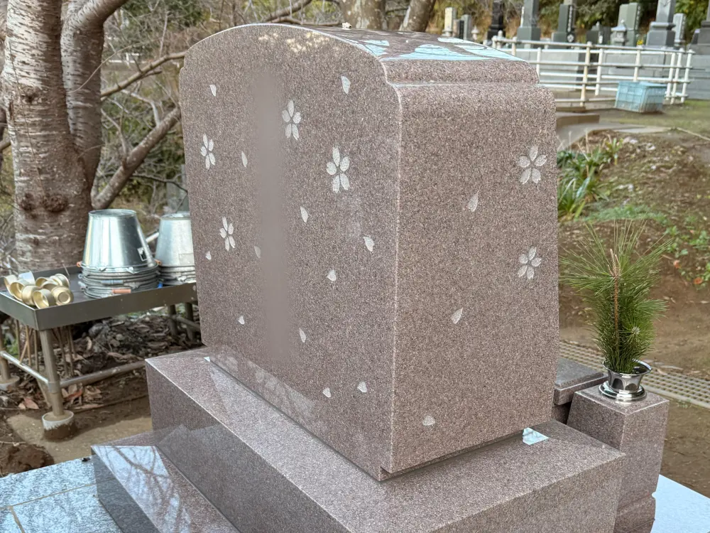 石の色味を活かし、ピンクがかった石材に桜の模様をあしらいました。