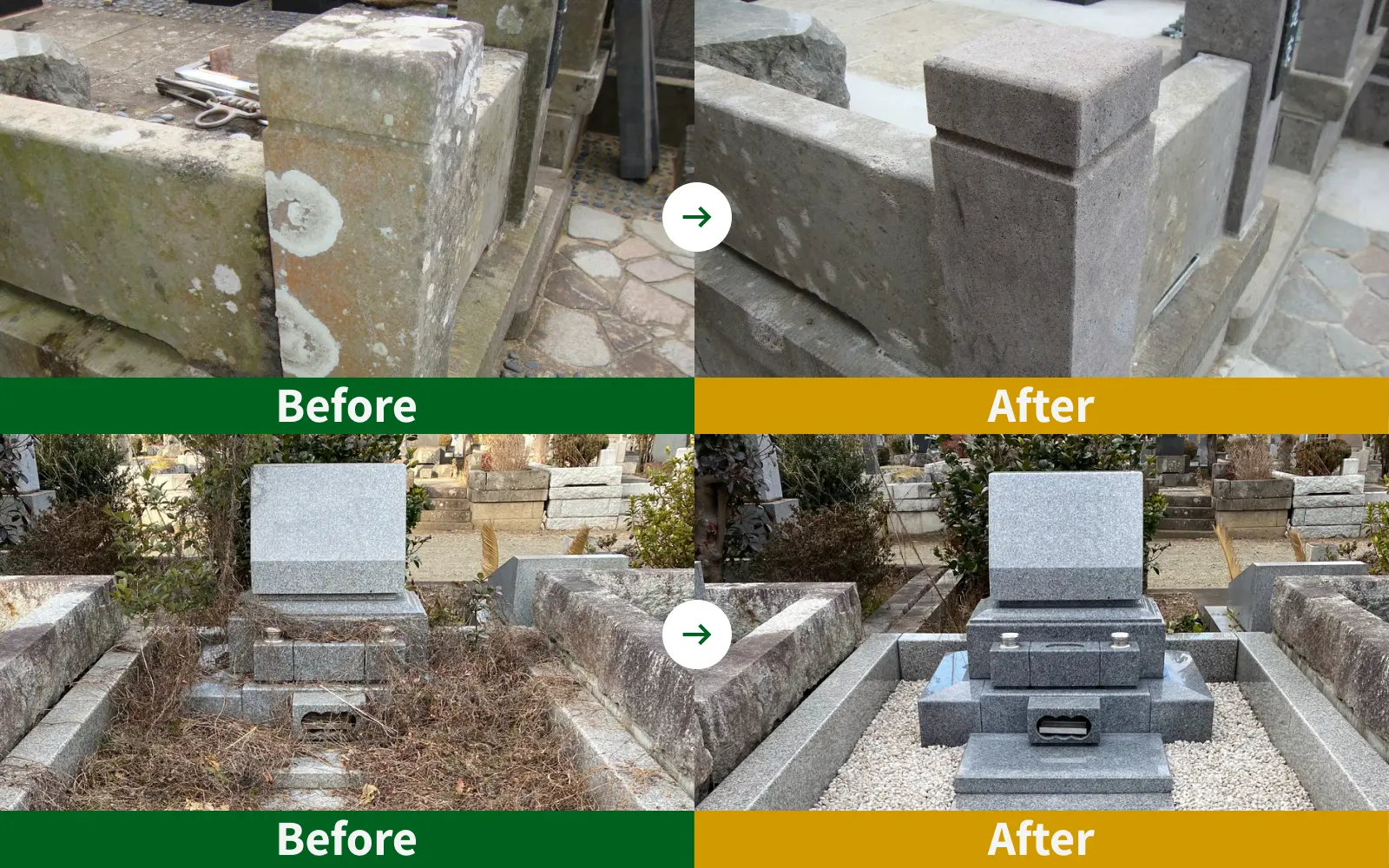 お墓のヒビ割れ、草むしりの大変さ、耐震性への不安など、長い年月を経てきたお墓のお手入れでお悩みではありませんか? お掃除やペンキの塗り直しだけでも、お客様のご要望に合わせて柔軟に対応しております。